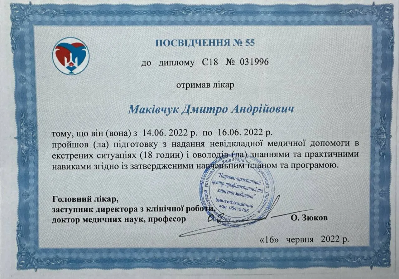 Дипломи та сертифікати лікаря