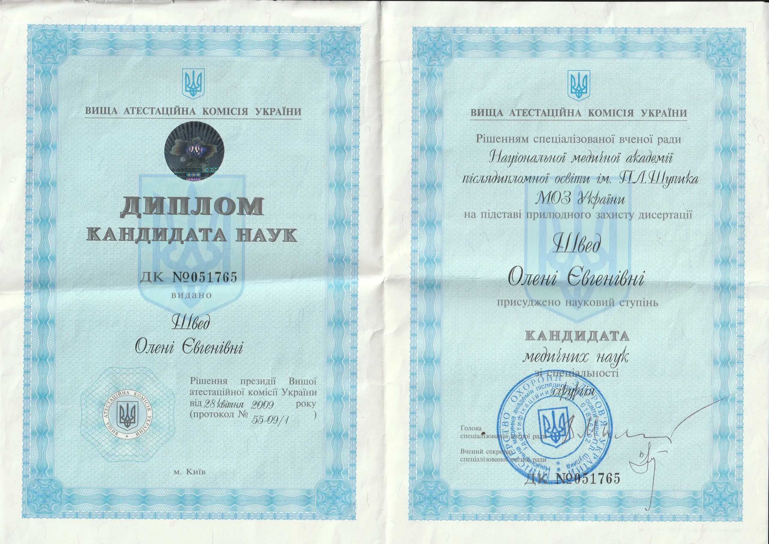 Кандидат медичних наук (PhD) – з 2009 р.